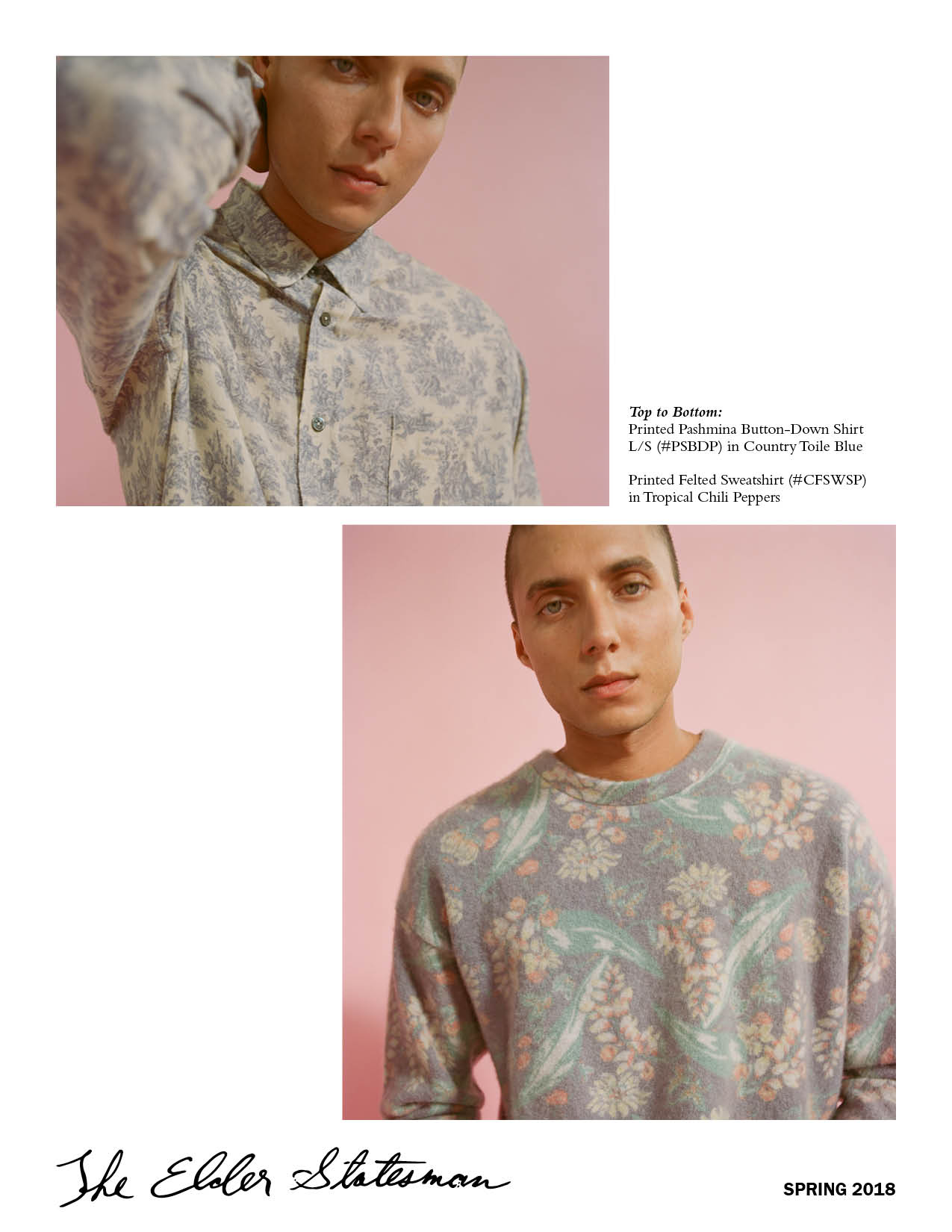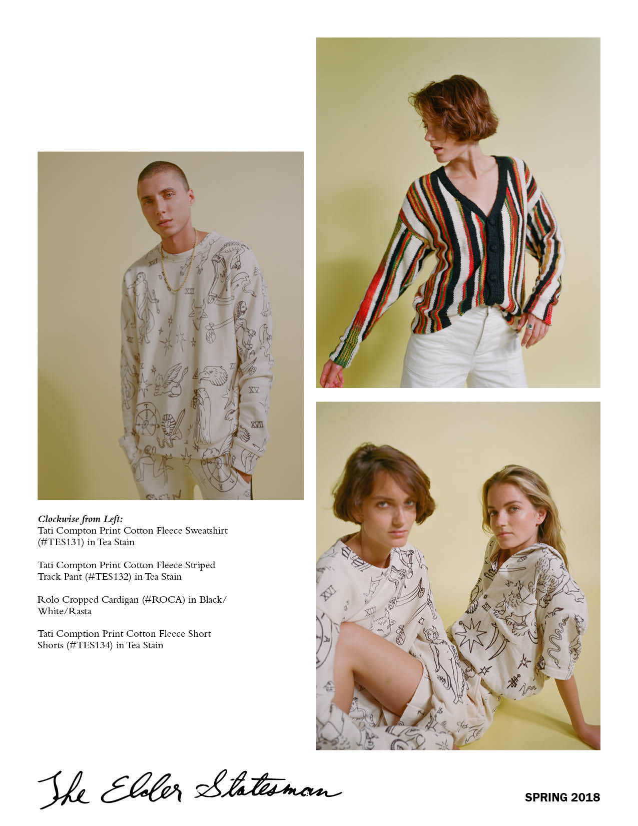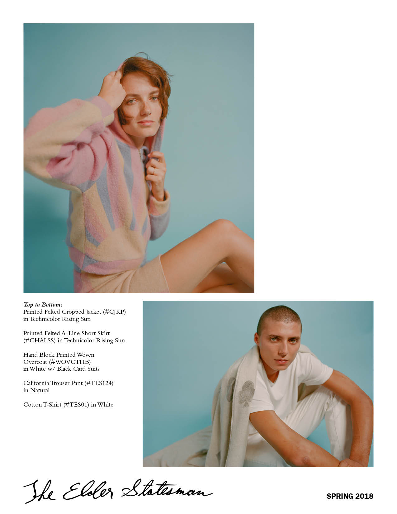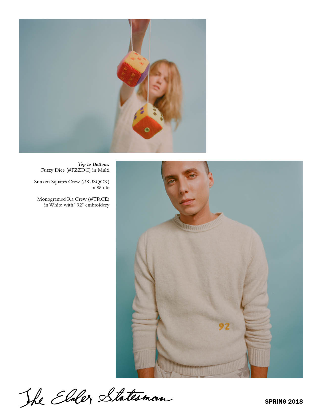 Digital publication, trunk show invitation design, product styling, photography, and editing for The Elder Statesman's SS18 collection.